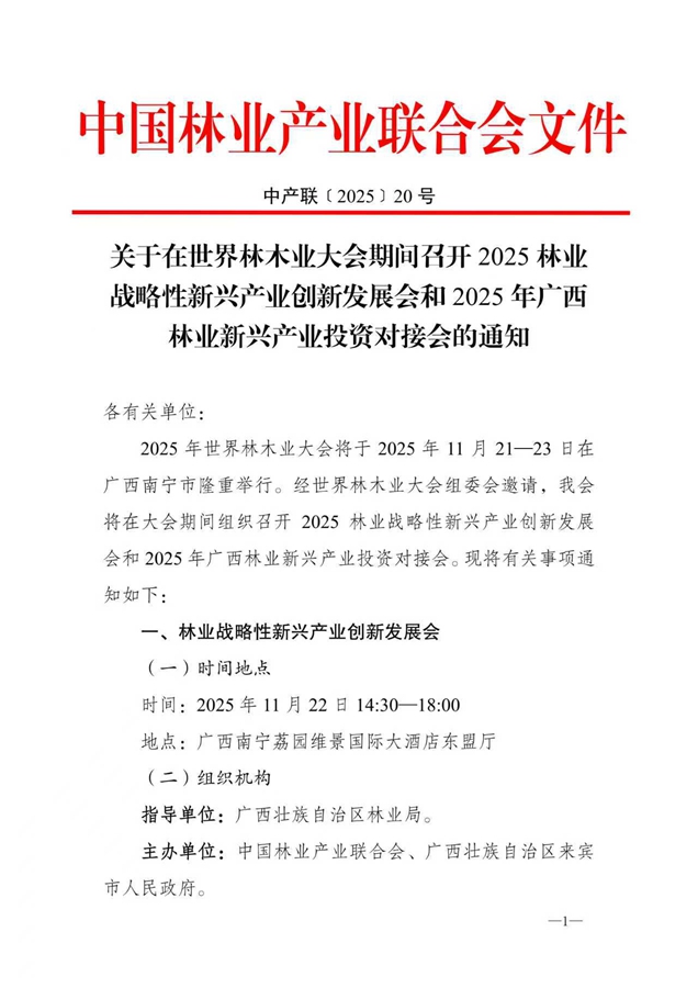 关于召开林业战略性新兴产业创新发展会和投资对接会的通知